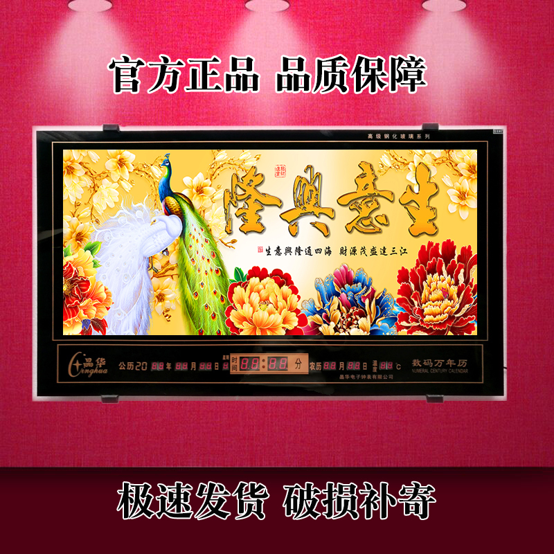 新房客廳裝飾日歷掛鐘,家和風(fēng)景萬年歷,超薄七彩燈光更漂亮
