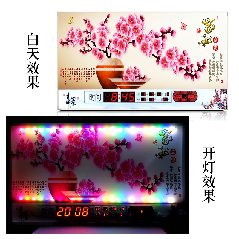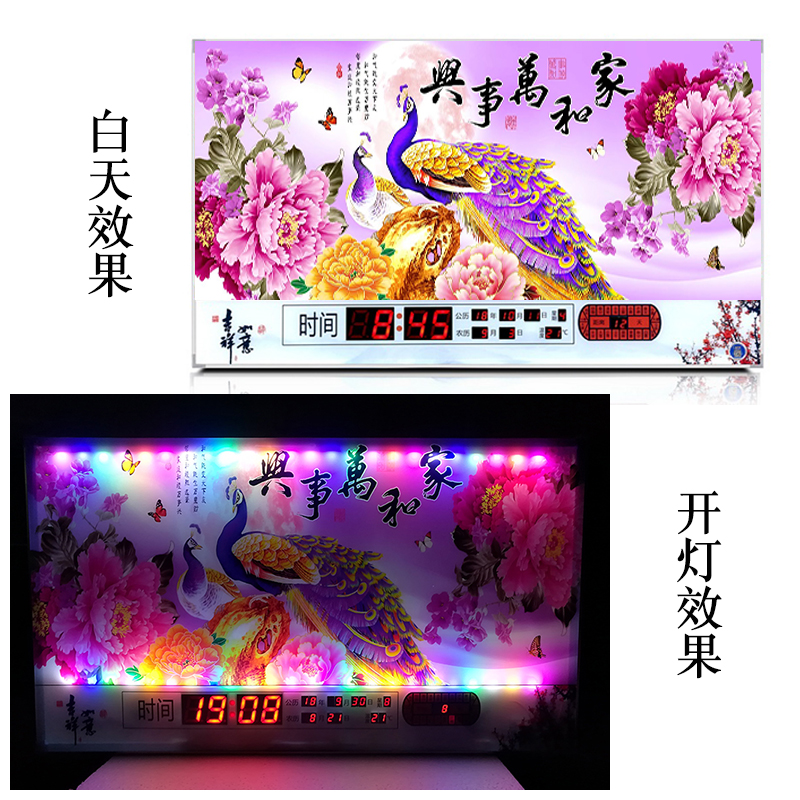 新房客廳裝飾日歷掛鐘,家和風(fēng)景萬年歷,超薄七彩燈光更漂亮