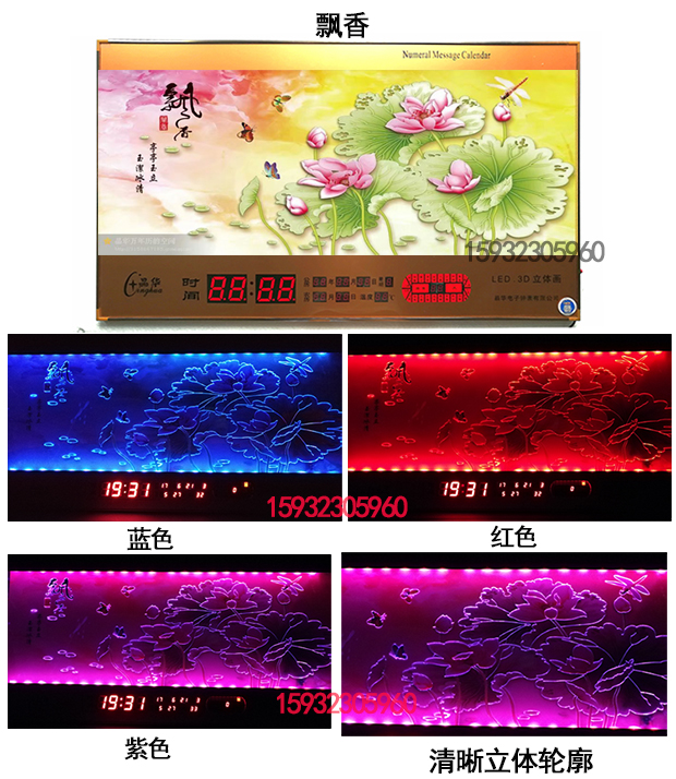 新房客廳裝飾日歷掛鐘,家和風(fēng)景萬年歷,超薄七彩燈光更漂亮